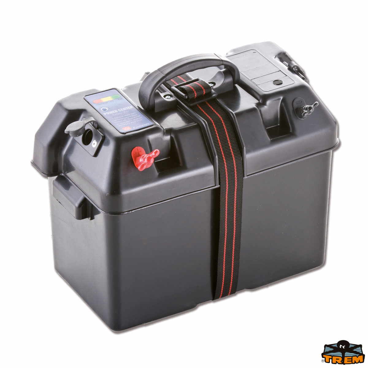 Cassetta portabatteria precablata ed equipaggiata CASSETTA BATT100AMP COMPLETA Equipaggiata con morsetti esterni + presa corrente stagna con fusibile automatico da 10A stagno + indicatore a LED dello stato di carica della batteria.