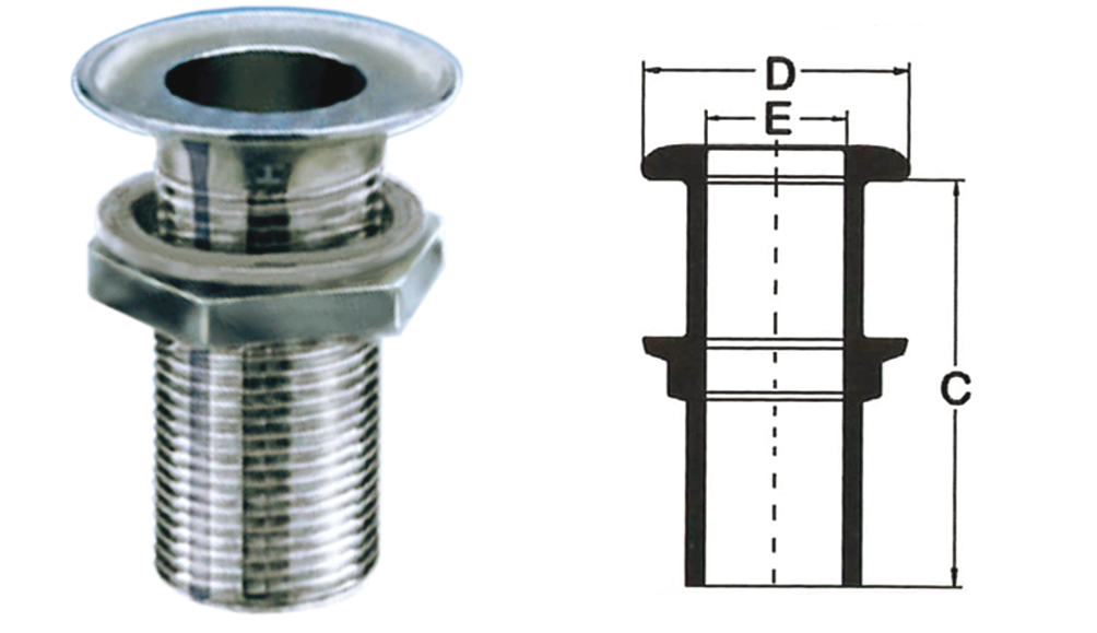 SCARICO A MARE Scarico a mare a pozzetto in ottone cromato. Filetto 3/8 C 49 mm D 35 mm E 10,9 mm